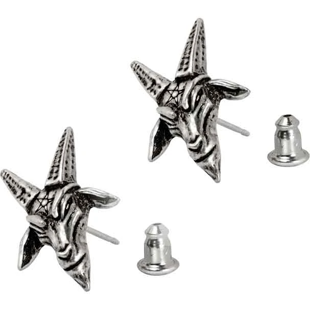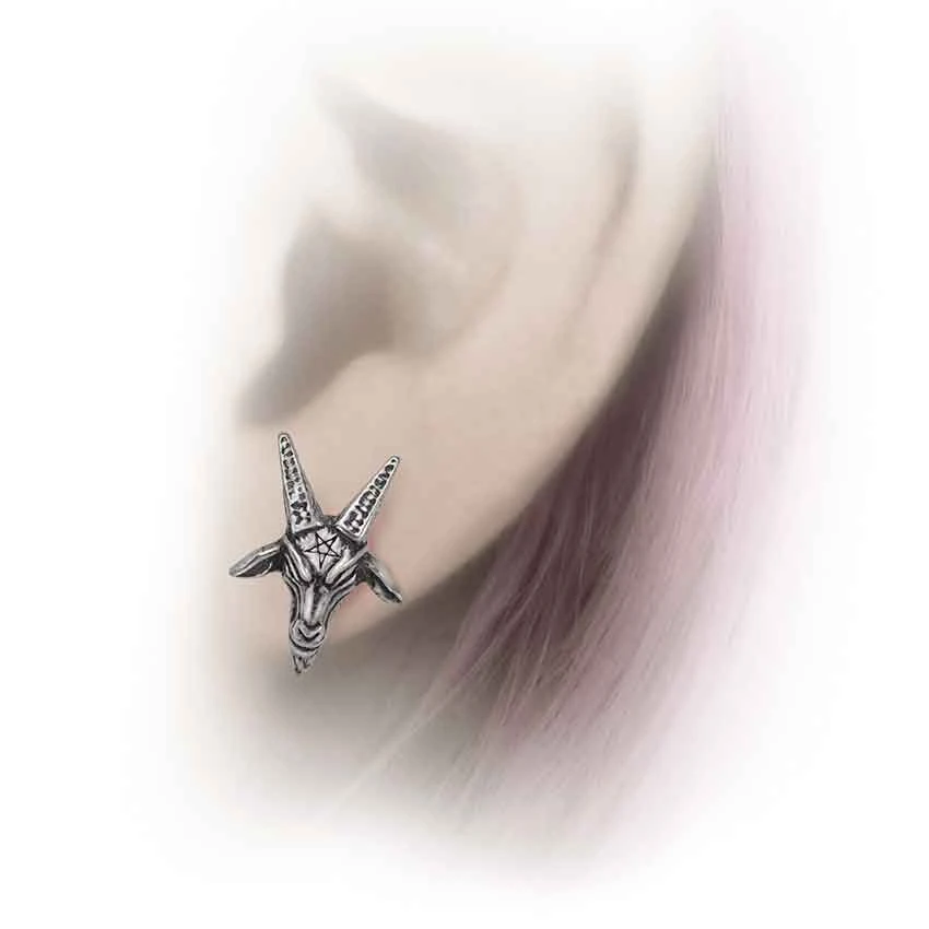Fans of the occult are sure to recognize the design of the Baphomet Stud Earrings, which are based on the artwork by Eliphas Levi. Made from fine English pewter, these Wiccan earrings come as a pair. They have surgical-steel stud backings, which require pierced ears. They depict the goat-like head of Baphomet. A pentagram adorns the forehead of Baphomet. A pentagram is a five-pointed star. The Baphomet Stud Earrings are great for everyday wear. They work well with any Wiccan jewelry collection.