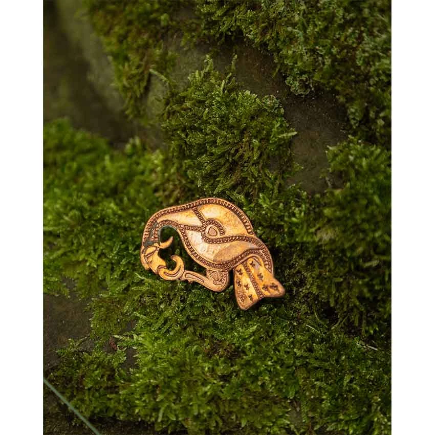 Many characters require a unique accessory to truly finish off their look. Make sure to check out the Bird of Prey Bronze Brooch. Made from bronze, this brooch has a pin on the back for attaching to a garment, not included. On the front, it features a stylized image of a bird of prey. Its head curls towards its talons. Hammered lines adorn the birds back and tail. You can add this brooch to your medieval or Viking costume. Wear it to a reenactment or roleplaying event.