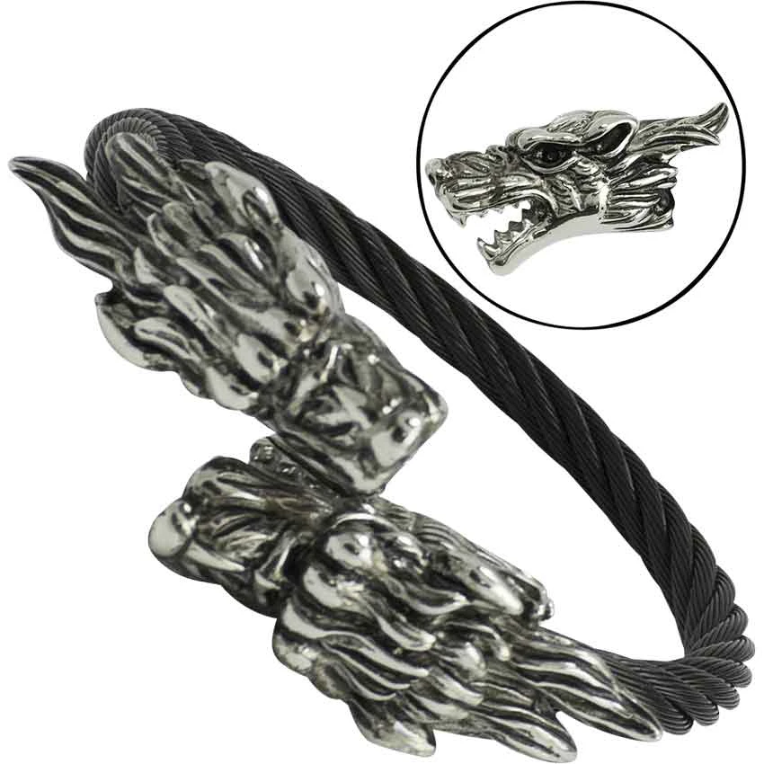 Make sure that you bring the ferocity of the mighty dragon to your daily wardrobe by wearing the Black Dragon Torc Bangle. Made from stainless steel, this black bangle comes in one size. It features an open-circle, torc-like design. The bangle has a twisted-cable band. Meanwhile, the ends of the bangle are snarling dragon heads. There is a silver-colored dragon head on each end. The well-detailed heads face towards each other. This bracelet makes a wonderful addition to any jewelry collection or fantasy-inspired outfit. You can wear it with your favorite ensemble.