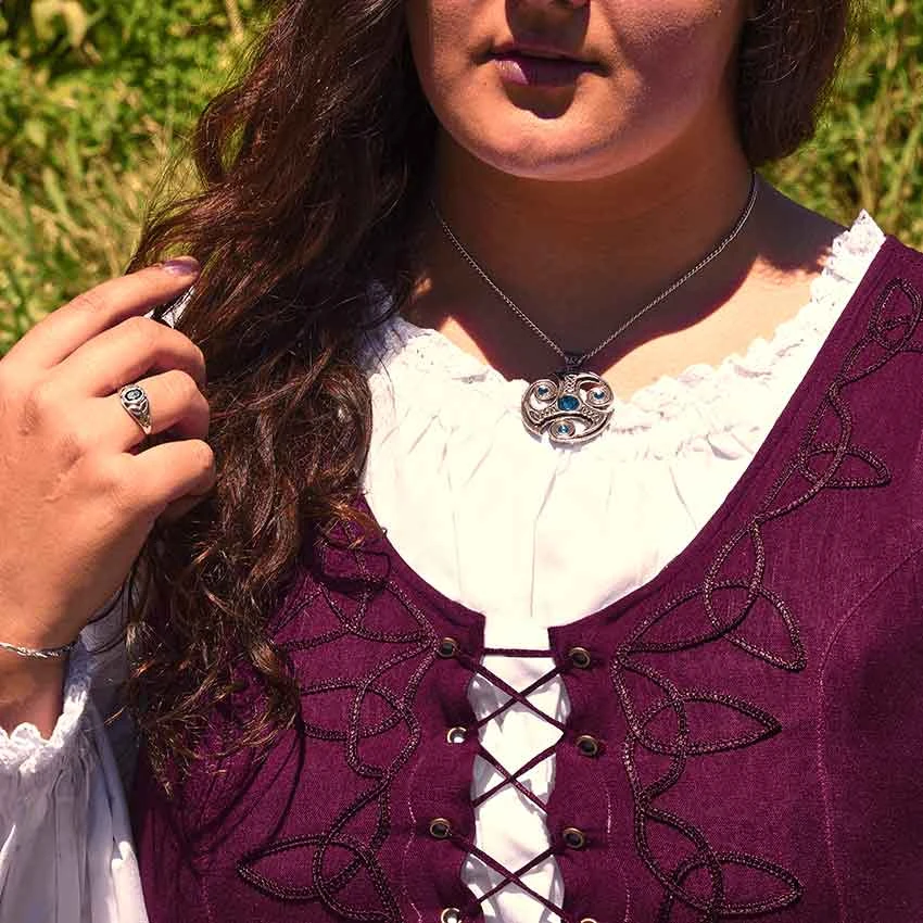 The triskelion symbol features three spirals, continually in motion, signifying the three realms of being. The Blue Jeweled Triskelion Necklace is a unique and stunning way to display an ancient universal symbol as a part of your daily wardrobe. This beautiful pendant is crafted from lead free pewter and features intricate knotwork along the arms that come out of the middle circle. In the center and on the three spirals of this triskelion pendant, gleaming blue Swarovski crystals are inset to create a lovely appeal. This pendant comes included with a matching chain and a jewelry box, which makes it a great gift for a loved one of for yourself. The triskelion is said to inspire the creation of opportunities, so allow the Blue Jeweled Triskelion Necklace to serve as a daily reminder of the opportunities that come your way.
