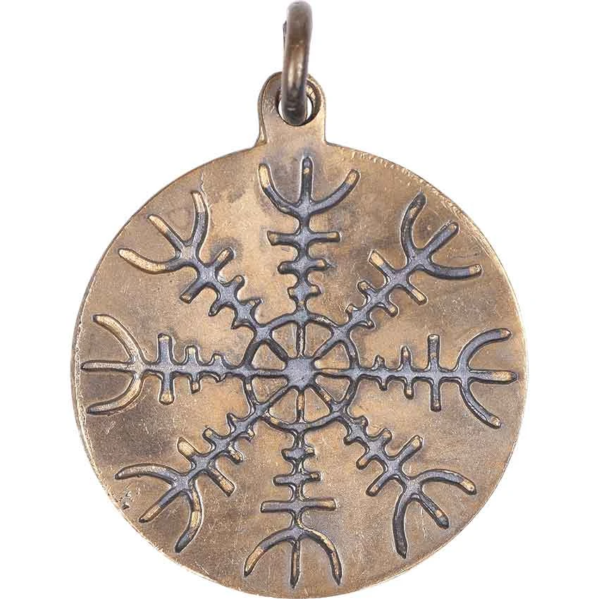 Viking warriors know the power of sigils in battle. Thus, they wear amulets like the Bronze Yrsa Rune Pendant to protect themselves. Made from bronze, this piece of Viking jewelry features a circular shape with a jump ring at the top. The thick jump ring allows the pendant to slide onto a chain, not included. On the front, the pendant depicts the Helm of Awe or the Aegishjalmr in Old Norse. The Helm of Awe is a magical sigil meant to protect a warrior in battle. On the back, the pendant is smooth. This Viking pendant works well with both Norse costumes and modern outfits. The Bronze Yrsa Rune Pendant looks great at a variety of events including reenactments, faires, and more.
