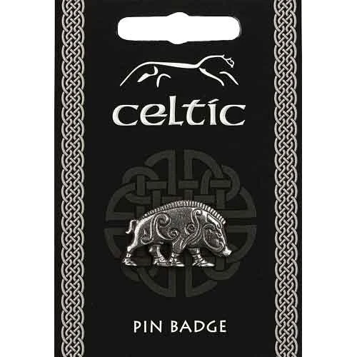 The Celtic Boar Pin Badge depicts an animal revered for its ferocity and aggressiveness. A defiant beast that is not easily defeated. It embodies the key characteristics of a warrior such as courage, stubbornness, and strength. This detailed miniature of a wild boar is crafted from polished pewter. Celtic vinery decorates its sculpted frame. It comes packaged on an informational card that highlights the rich history of the Celtic English invaders. These ancient warriors honored the fearless spirit of the boar. Add the Celtic Board Pin Badge to your collectibles, or attach it to clothing with its clasp fastener.
