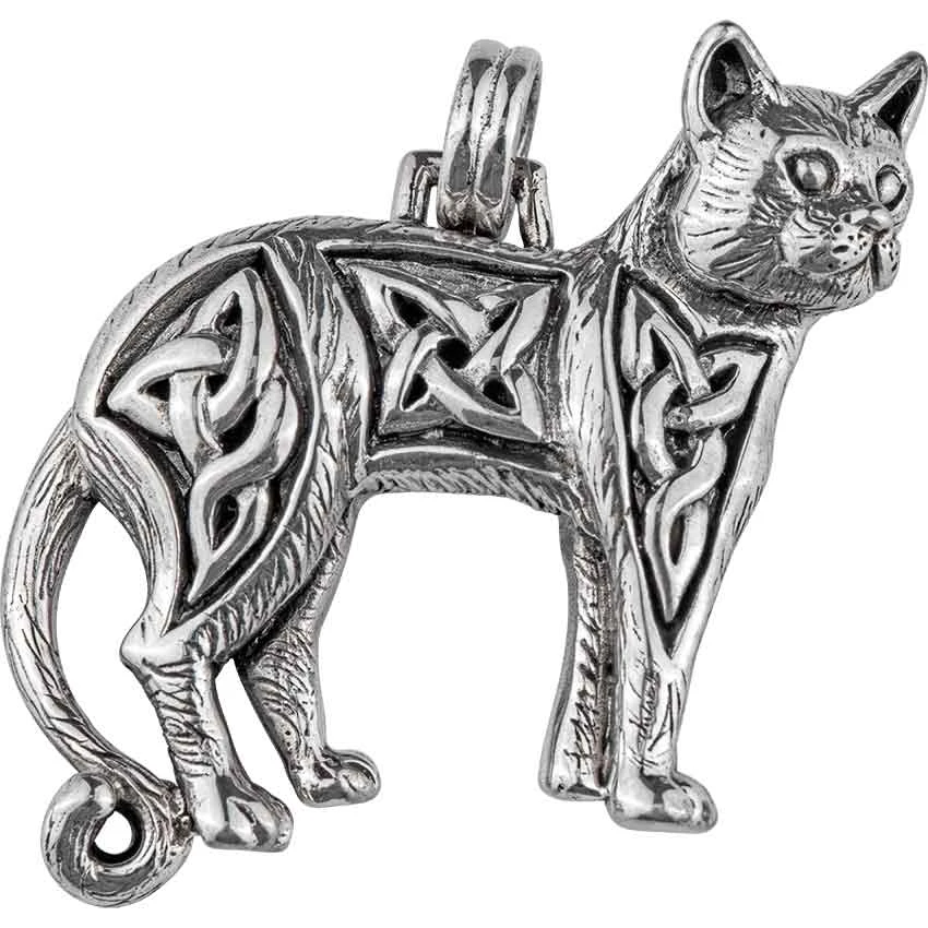 Intricate Celtic knotwork decorates this charming cat, who is ready to accompany you on any endeavor. This fine sterling silver Wicca and Pagan jewelry was created to celebrate the cats long relationship as a companion to practitioners of Wicca. Meticulously crafted from fine sterling silver, the Celtic Cat Silver Pendant is an enchanting celebration of this iconic Wiccan symbol. A necklace chain is not included, but can be purchased separately.
