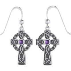 The Celtic Cross has become one of the foremost symbols of Celtic heritage in modern times. Though its origins are well-known, the meaning behind the distinct design is varied and ambiguous. Generally accepted as a blend of the Celtic and Christian cultures, the Celtic Cross is universally appealing. These traditional Celtic Cross earrings, crafted in sterling silver and adorned with synthetic gemstone accents, are a beautiful statement of Celtic pride, faith, and unity. Meticulously crafted from fine sterling silver, the Celtic Knotwork Cross Silver Earrings with Gemstones showcase the beauty of Celtic tradition.
