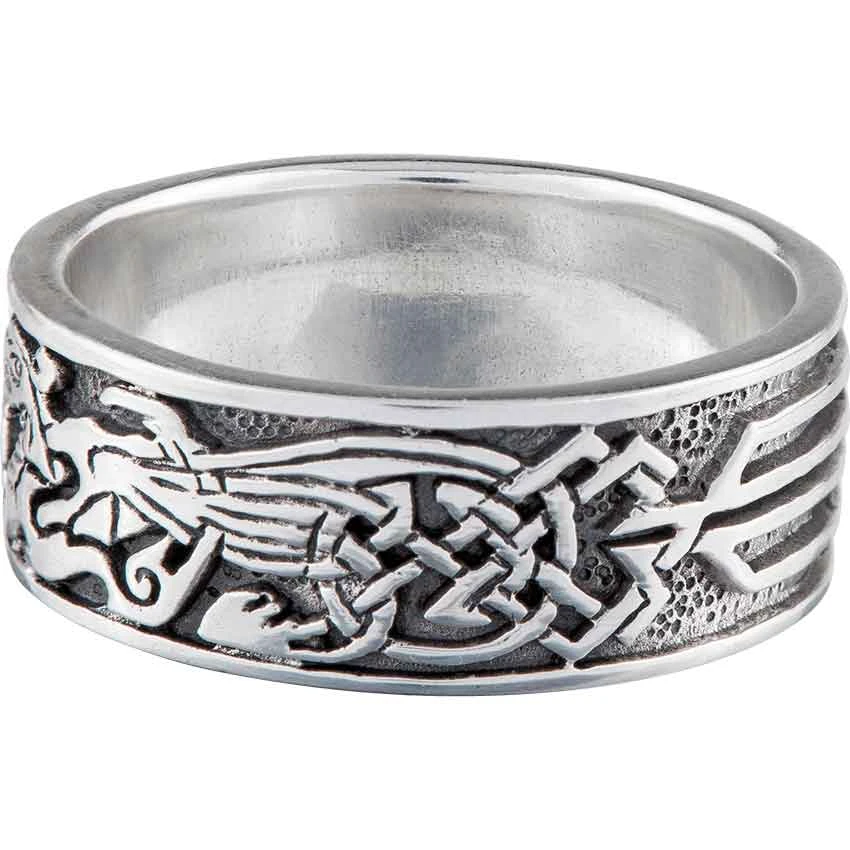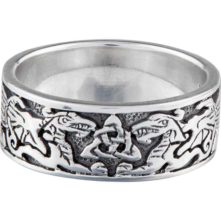 For a sterling silver band that is engraved with dragons and a unique Celtic design look no further than the Celtic Dragons Silver Ring. Meticulously crafted from fine sterling silver, the Celtic Dragons Silver Ring captures the spirit of the dragon in all its noble glory, along with an interwoven triquetra design. Celebrate the dragons renowned place in fantasy and legend throughout the ages with the Celtic Dragons Silver Ring. This ring comes in U.S. standard sizes.