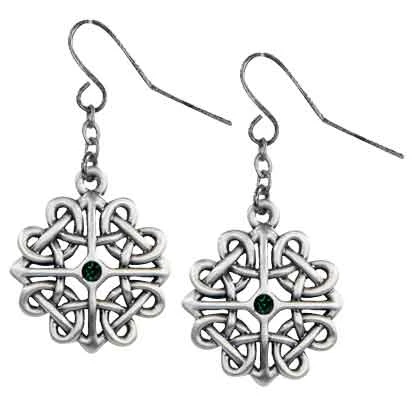 Celtic art often draws upon the natural world for inspiration in its designs. The Celtic Flower Knot Earrings mimic the petals of a flower in their twisting design with green crystal accent. The pattern of these earrings intertwines a square shape with an unending circle of loops, centering on its crystal accent. Family and friends will appreciate these lead free pewter earrings as a gift that is suitable for everyday wear or more formal occasions.