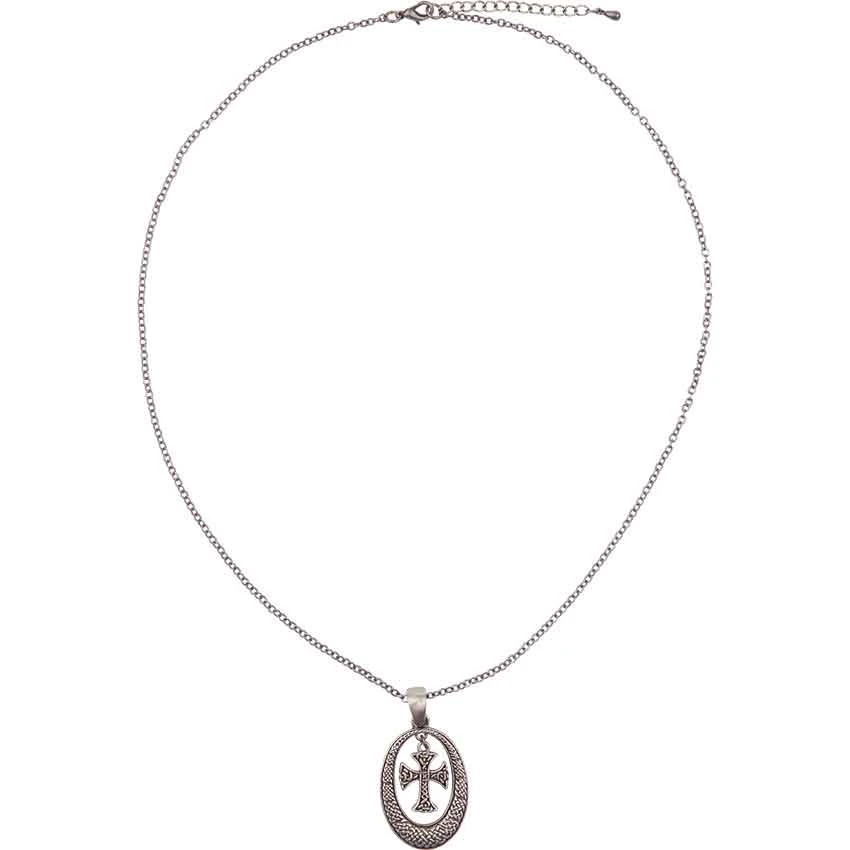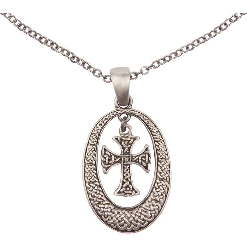 The Celtic Hanging Cross Necklace would make a great addition to your Celtic jewelry collection. This necklace features an oval of Celtic knotwork. Hanging from the center of the oval is a cross decorated with beautiful Celtic knotwork. The Celtic Hanging Cross Necklace is made of lead free alloy and comes with an adjustable chain. The Celtic Hanging Cross Necklace would make a great gift for any friend or family member.
