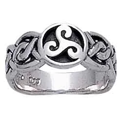 Symbolizing the power of three in the natural world, the triple spiral appears as one of the most frequent Celtic icons. The Celtic Triskele Knot Ring displays a triskele in a circle and braided knotwork forming the band. The triskele is formed from three spirals that come together in the middle. The sterling silver plating gives this white bronze ring an extra gleam, making it a stylish accessory for men or women. The ring works great as a gift for yourself or someone special in your life. This Celtic ring comes in US sizes 6 to 15.