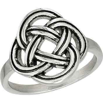 Whether you love Celtic style or a knotwork design, you should make sure to check out the look of the Celtic Woven Knot Ring. Made from stainless steel, this Celtic ring comes in five sizes. It has a straight band. At the top, there is a four-loop knot. The knot weaves over and under itself in an endless design. Two strands make up the open knot. This ring makes a wonderful addition to any jewelry collection or everyday outfit.