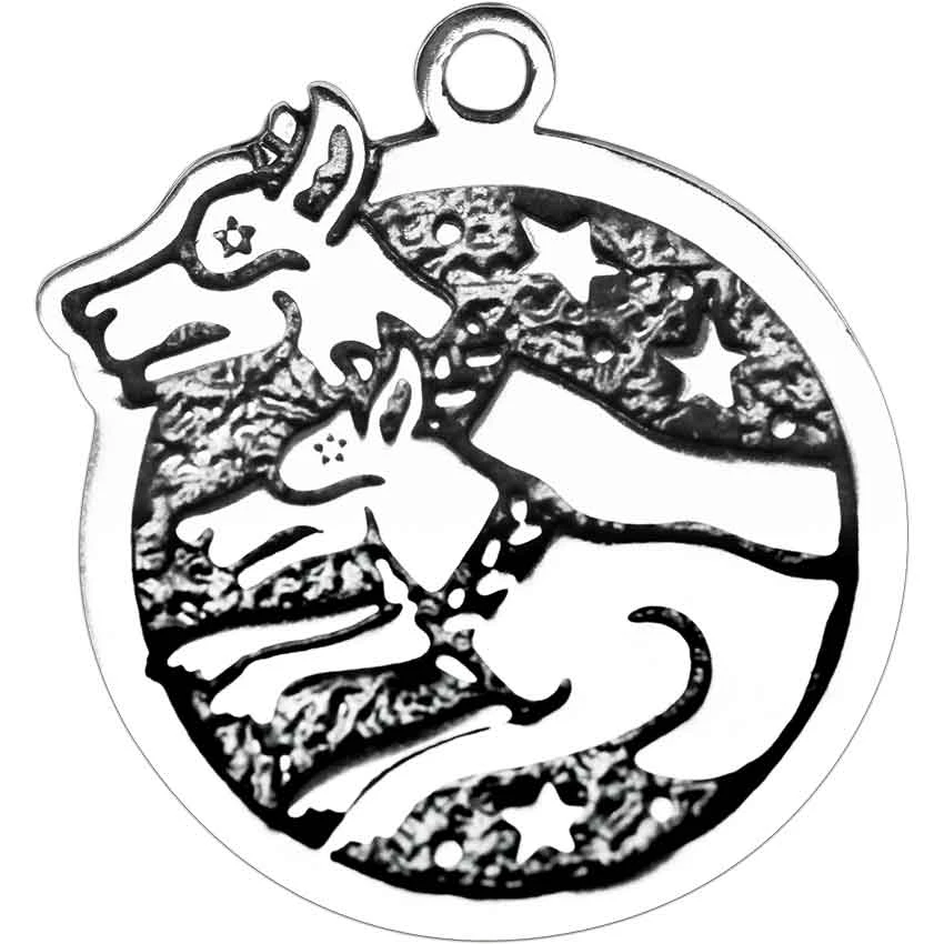 Associated with the Wild Hunt, the hounds of Annwn were omens of death. The Cwn Annwn Hounds Necklace portrays these creatures. This silver-plated necklace has a round shape with a bale at the top for sliding onto the included link chain. This necklace features a pair of dogs with stars for eyes. There are three stars around them. The background surrounding the hounds has an antiqued finish. This necklace comes with a satin pouch and info leaflet. The Cwn Annwn Hounds Necklace makes a great addition to any Celtic outfit or Wiccan jewelry collection.