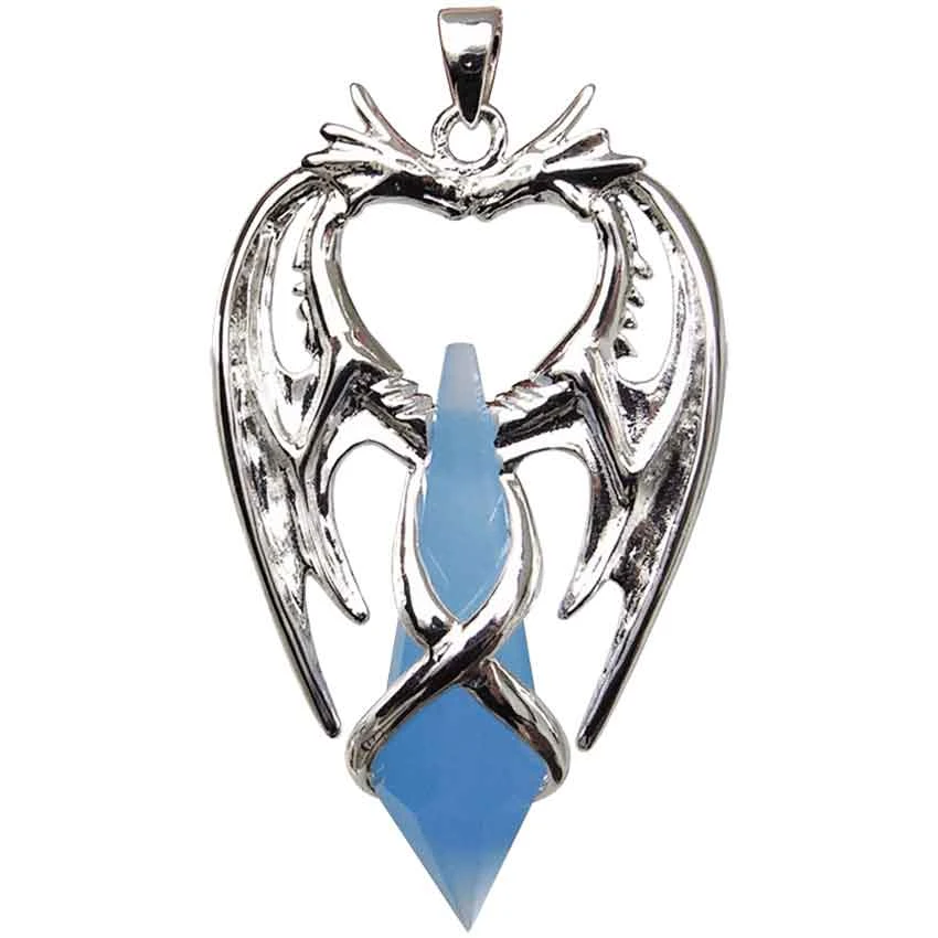 It has always been said that two are better than one. And in this Double Dragon Crystal Keeper Necklace, you get two dragons as they face off, their forms keeping a beautiful crystal safe and secure for you to enjoy as a part of your unique style. Designed by fantasy artist Anne Stokes, this stunning little jewelry accent features her iconic style, in the form of a duo of dragons as they face off in silver. The two dragons wings are opened slightly, while their twisting tails curl like a helix around a pale blue cubic zirconia crystal that rests directly between them. The overall shape of the dragons, along with their crystal decoration, is subtly reminiscent of a heart. The pendant is crafted almost entirely in fine pewter metal, which is finished with silver plating to give it a polished, precious metal gleam. It includes a chain metal necklace for easy wearing, as well as a keepsake satin bag for safe and easy storing. Subtle color and a silver gleam make this Double Dragon Crystal Keeper Necklace a lovely little accent, and the potential power of the crystal, offering second sight and protection, offers an occult appeal to this accessory that cannot be denied.