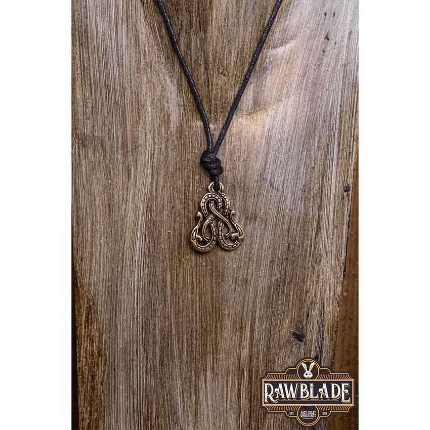 Do you wish to add a bit of style to your warrior or maiden outfit? Make sure to check out the Gold Double-Headed Viking Snake Necklace. Made from Zamac, this Viking necklace features an antiqued gold finish. The Norse necklace looks like a snake with two heads on the ends. The snake forms a knotwork pattern with its heads on the sides. Lines adorn their body. At the top, there is a loop for the included black waxed cord. This Viking snake necklace makes a great addition to Viking and Norse jewelry collections.
