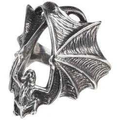 Love the look of dragons? Enjoy wearing dragon accessories even more? Make sure that you check out the Dragons Lure Ring. Handcrafted from pewter, this fantasy ring comes in three sizes. It has a twisted open-ended band. The ring takes the form of a serpentine dragon. At one end, the dragon curls its neck into a loop. Meanwhile, the dragons tail points away from it at the other end. The Dragons Lure Ring makes a great personal accessory or an addition to a fantasy jewelry collection.