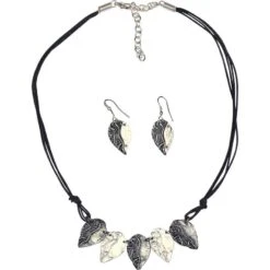 Antiqued Silver And Copper Maple Leaves Necklace And Earring Set