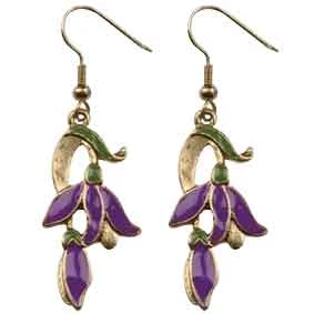 Complete your look tonight with a daring and alluring new accessory like the Flower Vine Earrings. This jewelry set can be the item that sets you apart from everyone else in the room and make you a true style guru. The full lead free pewter construction allows these earrings to be molded and adorned with various colors. The painted gold body has been shaped into a collection of vine style curves. The petal shapes have been filled with green and purple inlays to add color which can complement any outfit. This item is sold as a set of hook style earrings for true comfort and convenience. Dress to impress during your next social event with a pair of Flower Vine Earrings.