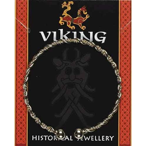 Viking men and women both wore jewelry as a symbol of status, often in elegant, twisted designs just like this Golden Viking Twist Bracelet. This gleaming piece of Viking jewelry makes a great addition to any ensemble. This simple yet striking Viking accessory comes on an information card describing why the Vikings wore jewelry and how the practice evolved over time. The gold-plated bracelet displays a twisted design with ends that feature simple spherical knobs. Make this piece a fine gift for a friend or keep it as a fantastic personal accessory. Either way, the look of the Viking cuff is sure to become a favorite!