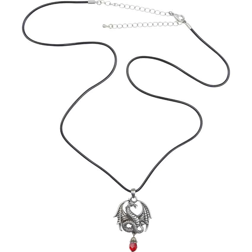 Step up your fashion game with a fresh new accent like the daring and stunning Gorbash Dragon Necklace. This original jewelry item can become a treasured addition to your personal collection that is as versatile as it is unique. This piece was constructed from lead free pewter and features an impressive level of engraved detail. The design of the dragons body is brought to life by a series of cuts that highlight the scales and wings of this fantasy beast. The menacing face even has articulated eyes and teeth that can intimidate anyone. At the bottom of the pendant, there is a dazzling red accent gem to add a touch of color. This fantastic Gorbash Dragon Necklace is an easy game changer, so pick one up today.