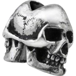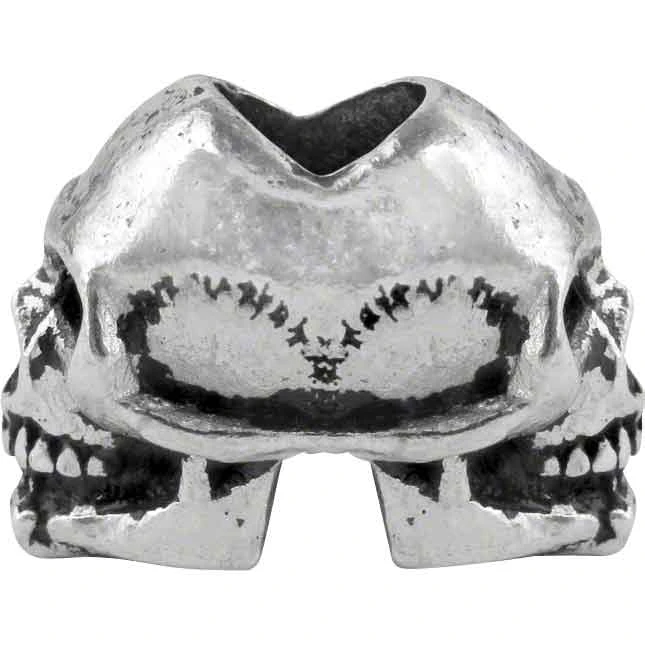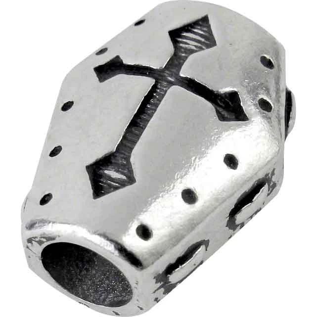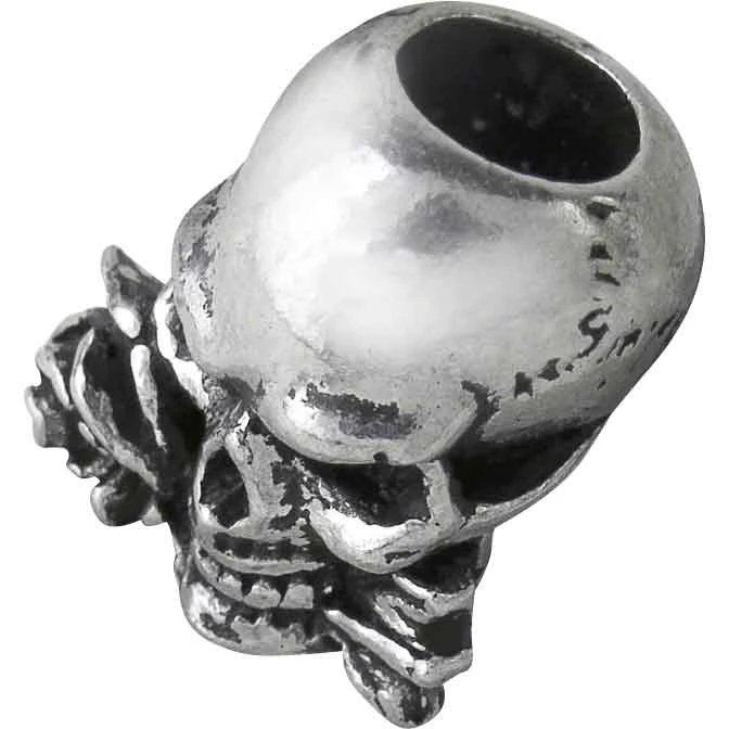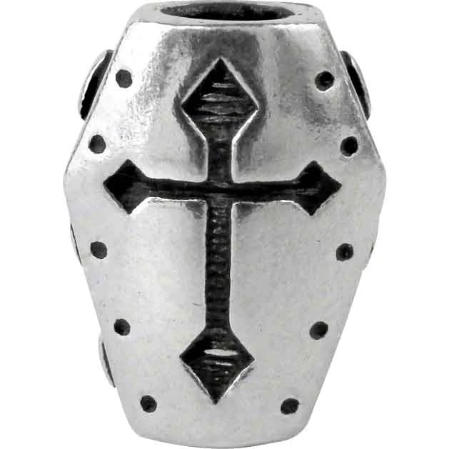 These gothic beads are essential regalia for the well-appointed mute and pagan mourner. The Gothic Funereal Hair Beads Set includes three pewter beads that can be worn by stringing them along sections of hair or in a beard. The Janus Skull bead looks both backwards to the past and forward into the future. The Roman god, Janus, determines beginnings and endings. The Coffin bead depicts a nailed-down casket bearing a medieval knights cross. This vessel will safely carry its passenger from this life to the next. The Alchemists Skull Bead offers the remains of a warrior, magi, and philosopher, acting as a talisman to help you get through the trials of life. Crafted from fine English pewter, these gothic hair beads display a lightly antiqued finish, making them the perfect final touch to your gothic look.