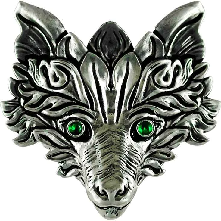 No matter if you like the look of the Greenman or enjoy fox-inspired jewelry, you will love the look of the Greenman Fox Necklace. Made from zinc alloy, this silver-plated necklace depicts a fox head. Leaves make up the face of the fox, like a Greenman. The grinning fox faces forward. It looks at the viewer with green crystal eyes. At the top of the foxs head, there is a bale for sliding on the included link chain. This necklace comes with a satin pouch and an info card. The Greenman Fox Necklace makes a great addition to any Greenman jewelry collection or nature-inspired wardrobe.