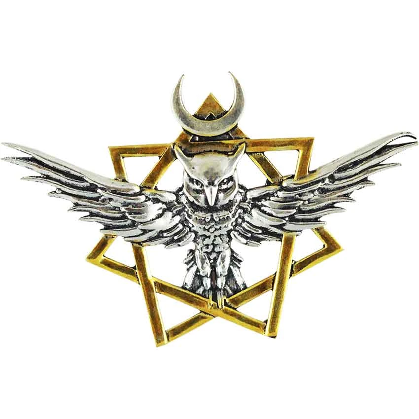 You can grab some avian style for your outfit by wearing the Guardian Owl Necklace. It brings a distinctive flair to your ensemble. Made from zinc alloy, this silver-plated necklace depicts an owl in flight. The owl has its wings spread outwards. Surrounding the owl is a gold-plated heptagram. A heptagram is a seven-pointed star. This one has interwoven sides. Above the owl, there is an upwards-facing crescent moon in the top point of the heptagram. Behind the silver moon, there is a bale that allows it to slide on the included link chain. This necklace comes with a satin pouch and an info card. The Guardian Owl Necklace makes a great addition to any Wiccan jewelry collection or wardrobe.