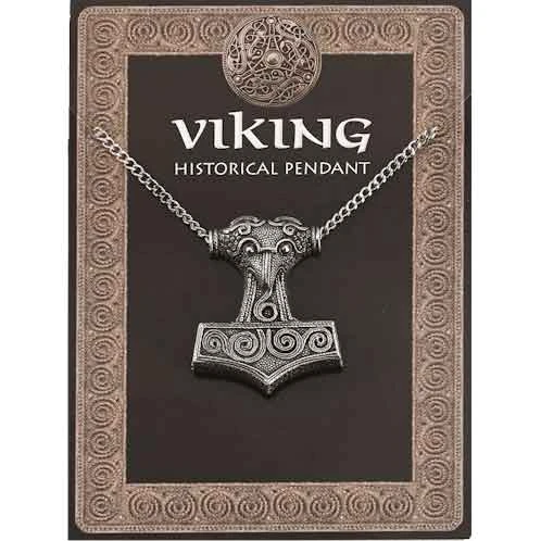 Mjolnir serves as a powerful weapon of destruction in the hands of its owner, Thor, who is one of the major Norse gods. Show off your own appreciation for this style with the Hammer of Thor Amulet Necklace. This pendant features a stylized representation of this mighty hammer. The pendant hangs from a silver chain, so you can easily incorporate it into your wardrobe as a fashionable accessory. The pendant comes on a large, fold-over card that describes how and why the Vikings wore jewelry and the techniques used to make it.