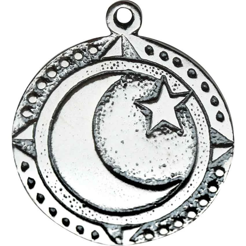 The winter solstice has the longest night. The Heulsaf Y Gaeaf Solstice Necklace celebrates the shortest day of the year. This silver-plated necklace has a round shape with a bale at the top for sliding onto the included link chain. This necklace features a crescent moon with a star next to it. Surrounding the moon and star are the arrows of a compass rose. Also, there are engraved dots around the edges between the points. Finally, this necklace comes with a satin pouch and info leaflet. This necklace makes a great addition to a Celtic ensemble or Wiccan jewelry collection.