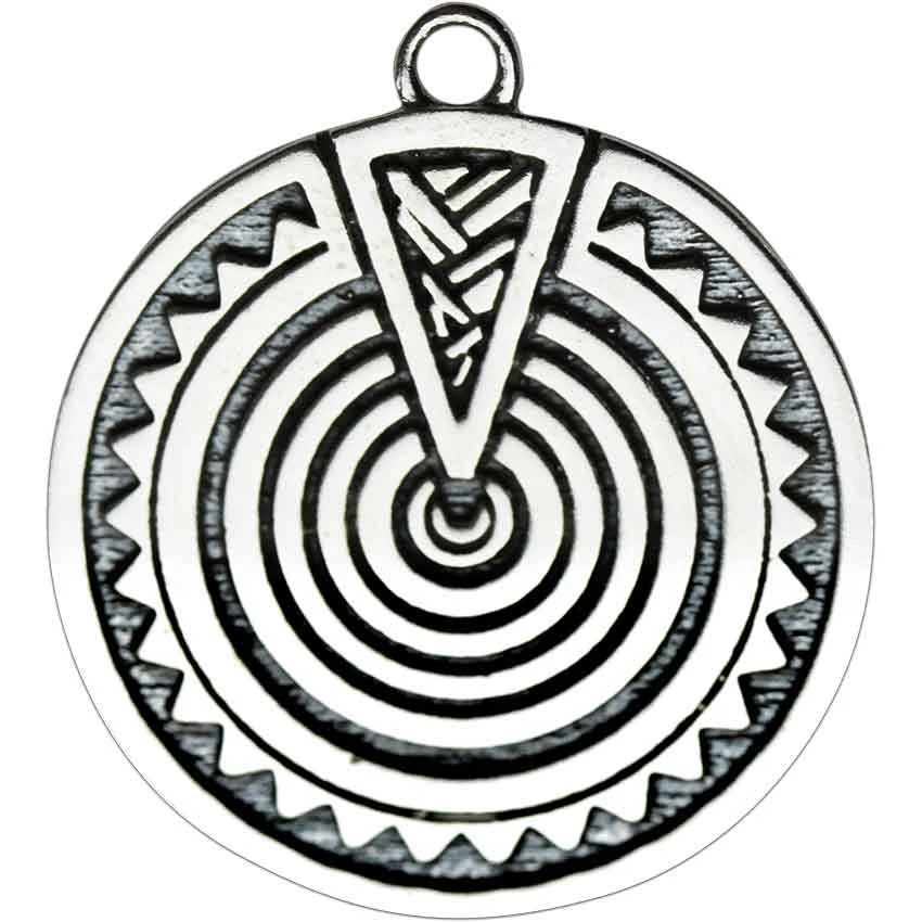 Heulsaf Yr Haf translates to summer sunshine in Welsh. The Heulsaf Yr Haf Solstice Necklace celebrates the Summer Solstice and its sunshine. This silver-plated necklace has a round shape with a bale at the top for sliding onto the included link chain. Below the bale, the necklace has a triangular section with a herringbone-like pattern. The rest of the necklace has a series of rings radiating out from the center. The ring near the edges has a series of points like the rays of the sun. Finally, this necklace comes with a satin pouch and info leaflet. This necklace makes a great addition to a Celtic ensemble or Wiccan jewelry collection.