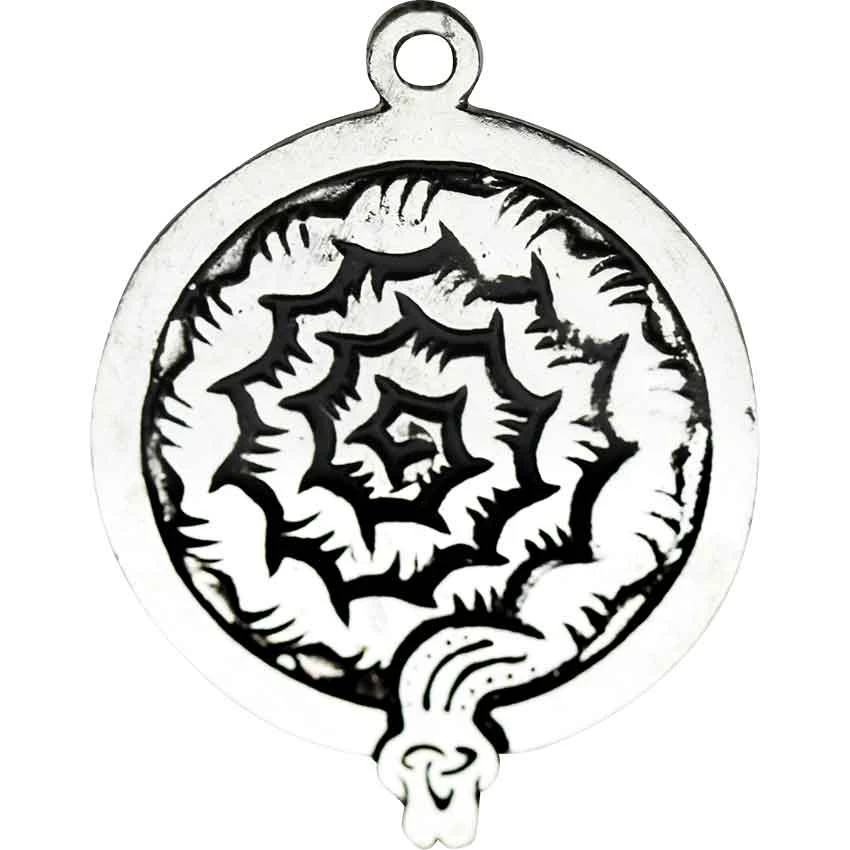 Looking for a nature or myth inspired piece of jewelry? Make sure that you check out the Keyne Celtic Necklace and its unique design. This silver-plated necklace has a round shape with a bale at the top for sliding onto the included link chain. This necklace features a snake coiled into a spiral. The snakes head hangs down at the bottom of the necklace. A triquetra adorns its head. The snake references a legend of Keyne, a woman said to have turned snakes to stone. Finally, this necklace comes with a satin pouch and info leaflet. The Keyne Celtic Necklace makes a great addition to a Celtic ensemble or Wiccan jewelry collection.