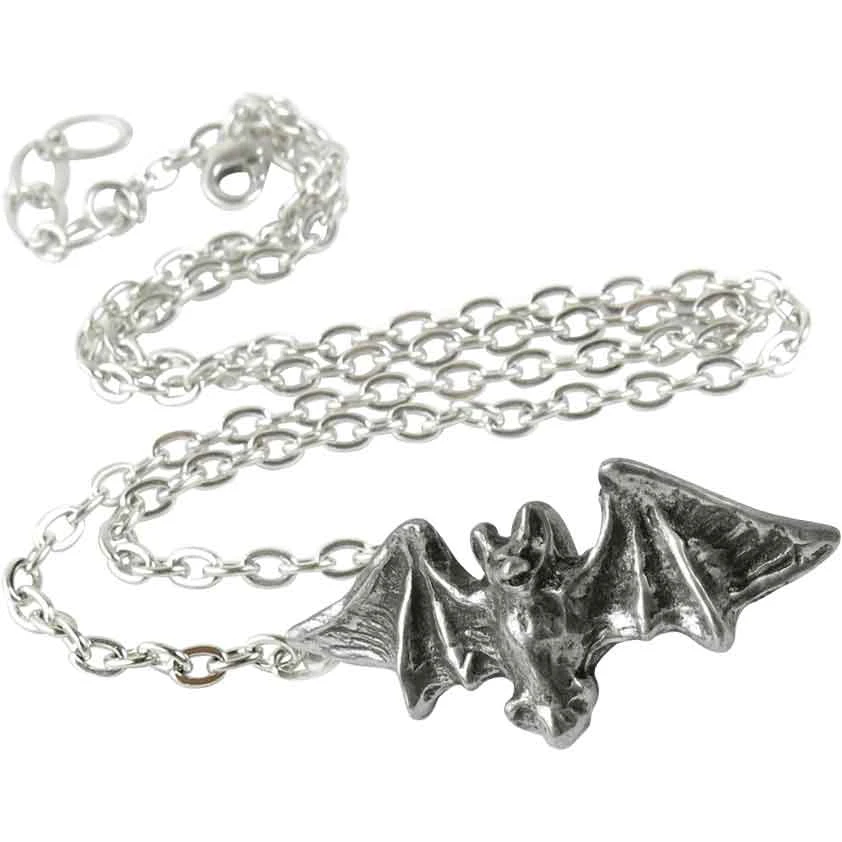 In todays age of disbelief and logic, it can be hard for a creature of the night to make themselves known. The Kiss of the Night Necklace makes a stunning yet discreet token of your alternative, nightly tendencies. This small bat token hangs from the simplest of chains, and is sure to not draw undue attention. Crafted with detail and discretion in mind, the token is unobtrusive, even though the bat wings are spread open. Perfect for the denizen of darkness who likes to wear a reminder of their state, without calling attention to themselves, the Kiss of the Night Necklace is a sure-win for have their own unique nightly habits.