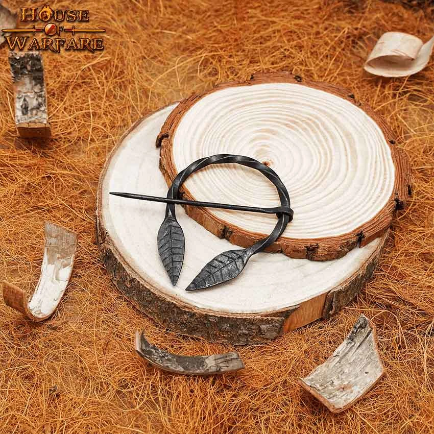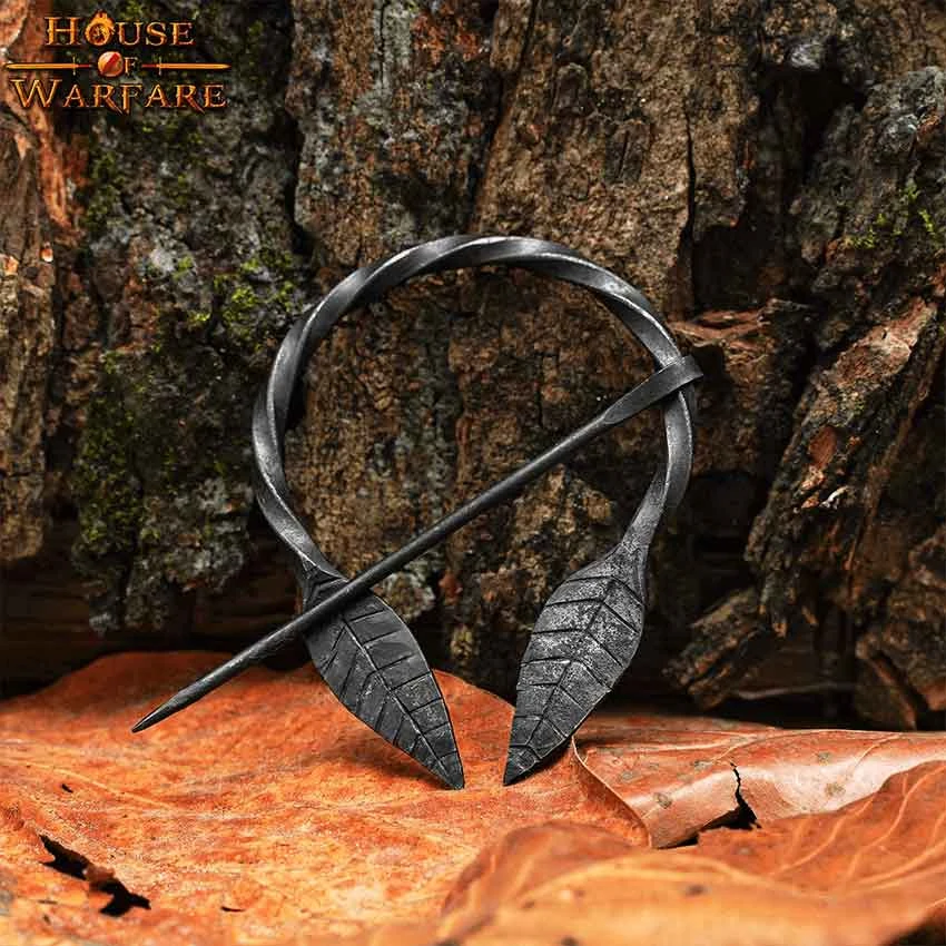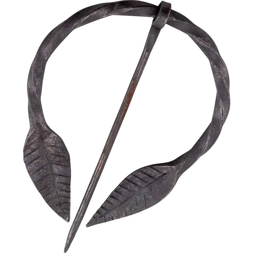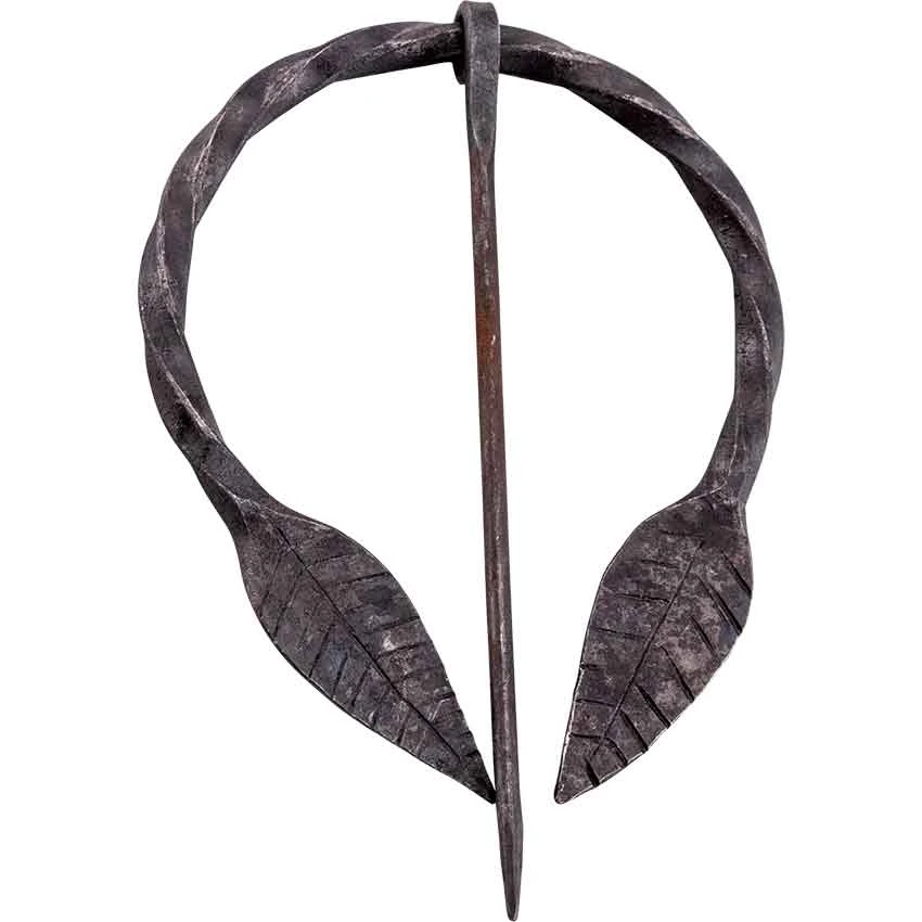 Elves and romans would equally like this beautiful brooch. The Leaf Penannular Brooch follows a tradition that is centuries old, with its own natural twist. This wrought iron brooch features gentle twisting along the outer ring. The forged ring ends in two delicate leaves, giving the brooch a more earthy appearance. The unpolished finish adds to its rustic look. A pin fastens the brooch by sliding along the outer ring. Many people from different eras and social classes wore similar brooches. Wear this elegant accent as a part of your fantasy or historical costume.