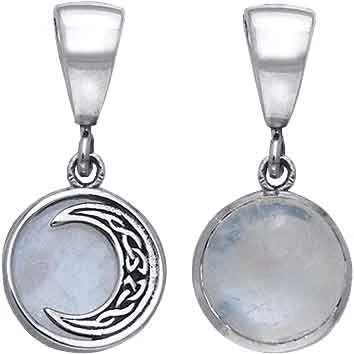 With Celtic inspiration this crescent moon charm pendant is a unique way to celebrate the beauty and importance of the moon. The Magick Moon Collection has been created to celebrate the important place the moon occupies in Pagan and Wiccan rituals. Meticulously crafted from fine sterling silver, the Magick Moon Silver Flip Pendant is an enchanting reminder of the moons power, beauty, and intricate connection to our lives. This beautiful moon flip pendant features a crescent moon with delicate Celtic knotwork on one side and a synthetic rainbow moonstone gem on the reverse. Both sides make an elegant statement, for double the value. The Celtic Knotwork Collection has been created to celebrate Celtic heritage and capture the intricate knotwork designs that have inspired mankind for ages. Meticulously crafted from fine sterling silver, the Magick Moon Silver Flip Pendant showcases the beauty of Celtic tradition. A necklace chain is not included, but is available for purchase separately.