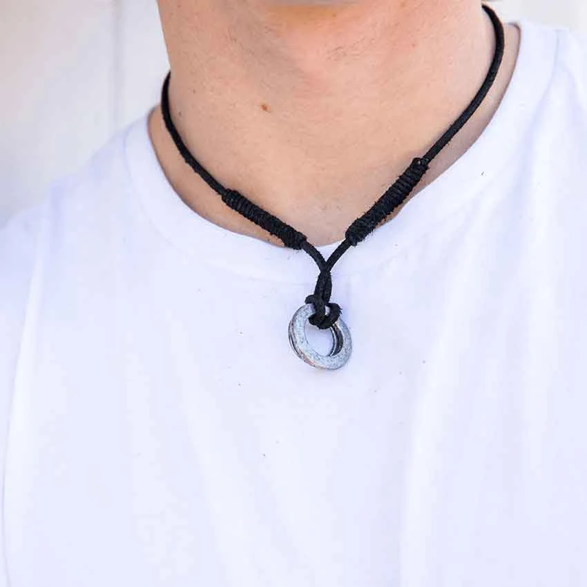 If your fantasy character has a rugged style, then you need an accessory with a similar look. Check out the Medieval Ring Necklace. This handmade necklace has an adjustable black cord. The leather cord has a couple of wrapped sections. At the center, the cord attaches to a silver-colored zinc ring. It has a raised central ring. This necklace is great for Viking, medieval, and modern outfits. You can add the Medieval Ring Necklace to many jewelry collections.