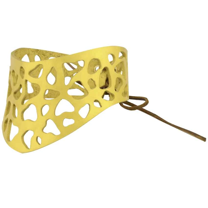 Across the black salt sea, a queen with three dragons builds an army to take back what is her right with fire and blood. This Mother of Dragons Leather Choker emulates the intricately patterned ornaments she wore in the walled city. Made to match the Mother of Dragons Belt (DK7008) and Mother of Dragons Vambraces (DK6077), this leather accessory is richly designed, featuring a cut-out pattern that is elegant and appealing. Hand crafted in our shop from high quality leather, this decorative choker is available in regal gold or startling black. Inspired by one of the outfits worn by Daenerys in Game of Thrones, the Mother of Dragons Leather Choker has grommet holes in the back and secures with leather lace for a custom fit. Although this choker was not actually worn on the TV show, it is inspired by the popular look of her Qarth dress.