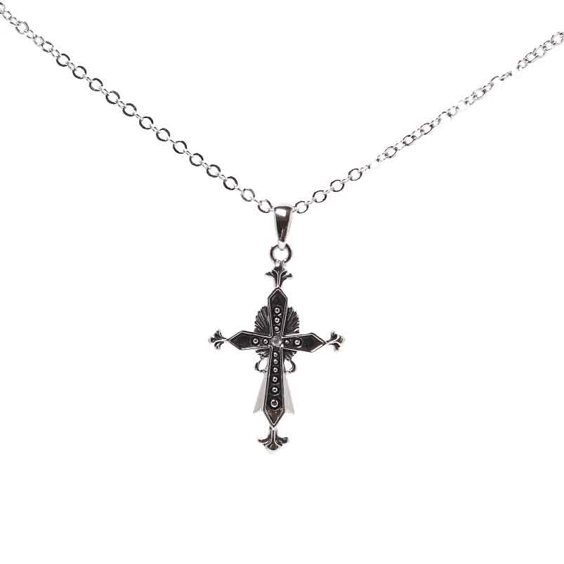 Regal and sophisticated, this Ornate Medieval Cross Necklace looks like it could have been the symbol favored by a noble house from the medieval ages. The design has aged well, as what looked good then happens to look good now. Like every cross has throughout the ages, this pendant features four arms, with one being longer than the other, although that is where the similarities end. This cross features decorative round sphere adornments on each arm of the cross, as well as fleur-de-lis designs that extend from the end of each arm. At the center of the cross is a white rhinestone decoration backed by a sunburst display from behind the cross, while the bottom arm of the cross features a wider, polished blade-like extension. The cross is made from lead free metal, and it includes a silver chain for easy wearing. Of course, you can wear this Ornate Medieval Cross Necklace to complement a wide assortment of different costumes, but it is also a great personal accessory to just wear throughout your day-to-day life, showing off a bit of personal style no matter what you wear or where you go.