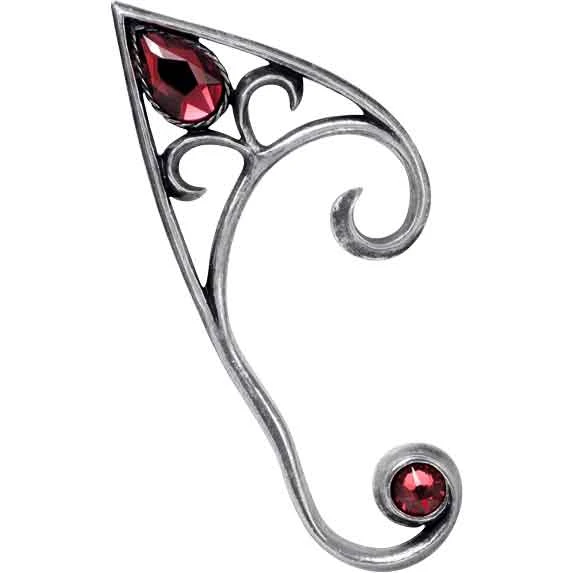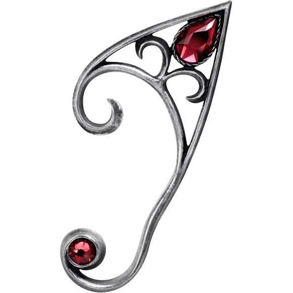 Whether you wish to transform yourself into an elf or you enjoy unique ear wraps, make sure to check out the Pewter Elvyn Ear Wraps. Made from pewter, these silver-colored ear wraps are available individually for just the left ear or for just the right ear. Each ear wrap has a scrolled design. It curls into a gentle spiral at the top of the ear. From the spiral, there is an elven-like point. Within the point, there is a V-shaped piece of scrollwork facing a red, teardrop-shaped Swarovski crystal. At the bottom of the ear wrap, it curls into another spiral in the opposite direction, wrapping around a circular crystal. On the back of the crystal, there is a steel post backing. Therefore, these ear wraps require pierced ears to wear. You can easily add these ear wraps to any fantasy outfit as well as any jewelry collection.
