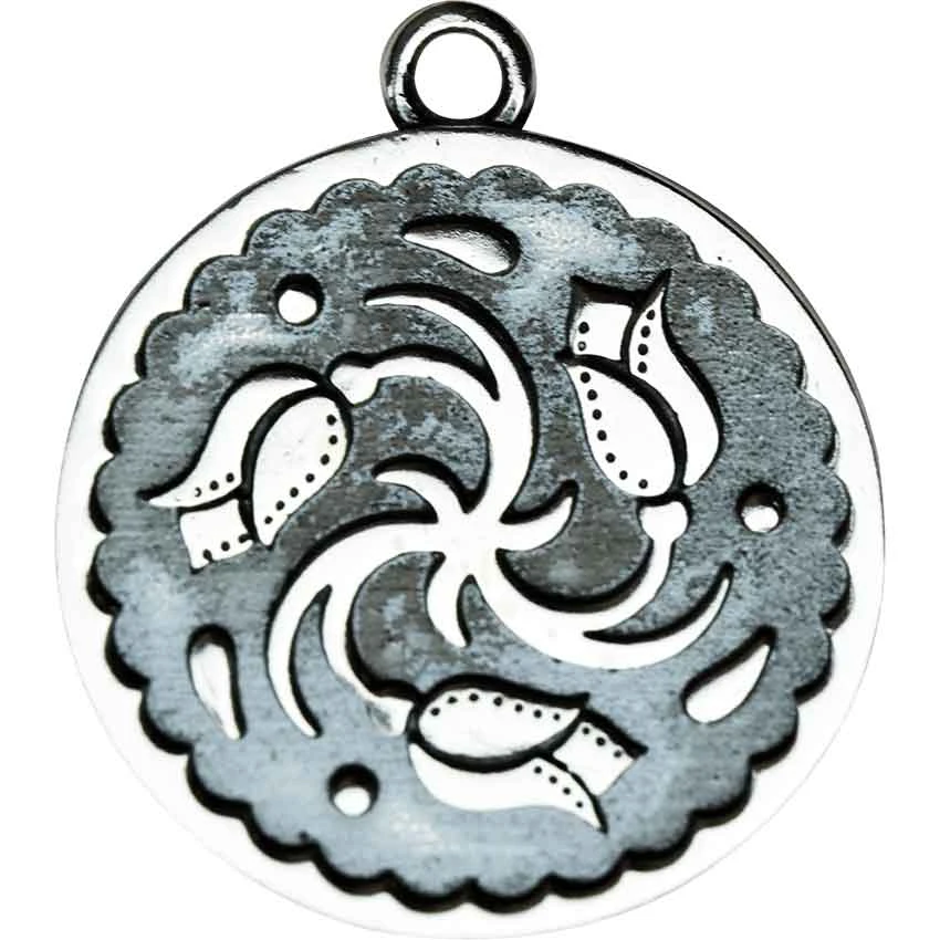 No matter if you celebrate Imbolc or just love flower jewelry, you are sure to enjoy the Plated Imbolc Necklace and its design. This silver-plated necklace has a round shape with a bale at the top for sliding onto the included link chain. The necklace references Imbolc, a midwinter festival celebrating the halfway point to spring. It also references the Celtic goddess Brigid. The design of the necklace features three snowdrop flowers. The flowers form a triskele, a spiral with three points. The background around the snowdrops has an antiqued finish. This necklace comes with a satin pouch and an info leaflet. It makes a great addition to any Celtic outfit or Wiccan jewelry collection.