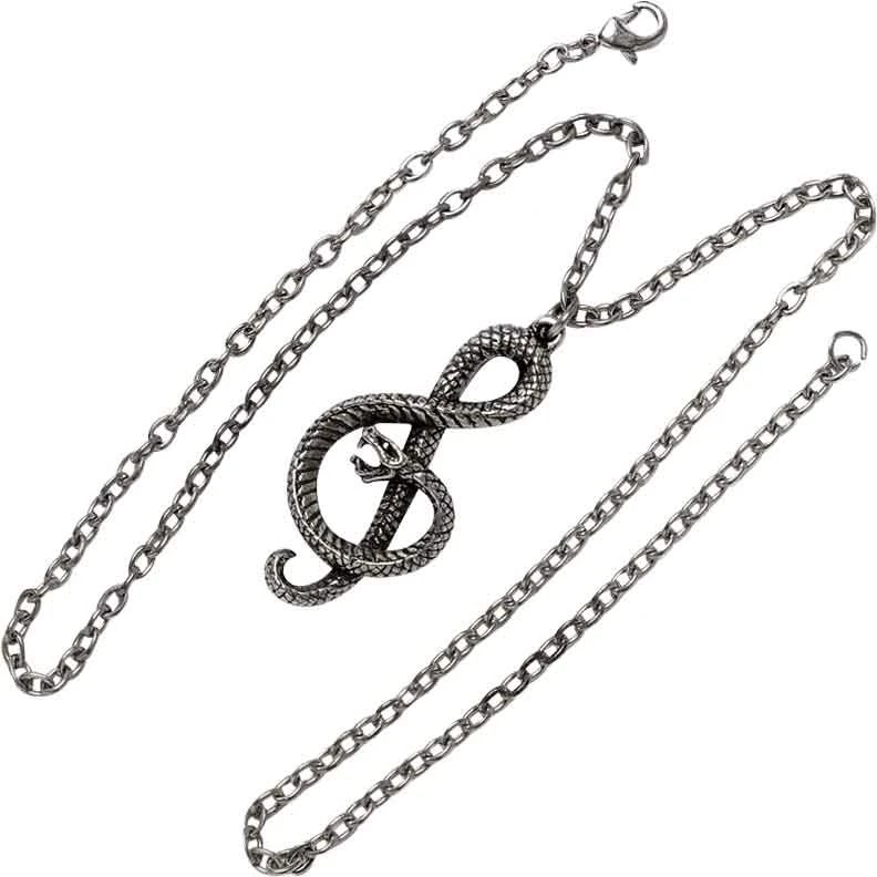 Show your love for the darker side of music and style all at once with the Playing the Devils Tune Necklace. It makes an eye-catching addition to any gothic outfit as well as a unique gift for goths, musicians, and music lovers. Keep this piece of snake jewelry suitably stored in one of our gothic or fantasy trinket boxes.