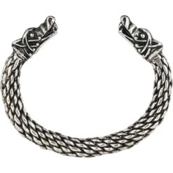 At each end of the open Norse bracelet, there is a stylized wolfs head. The Nordic bracelet comes with care instructions. You can wear this Scaled Viking Wolf Bracelet with a variety of Viking and Celtic looks. The Celtic bracelet also makes a great addition to a Norse jewelry collection.