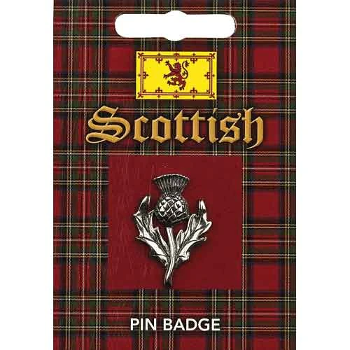 According to a 13th century legend, this prickly flower cut short an ambush attempt by Norse invaders. Since then, it has become the proud emblem of Scotland. Celebrate its rich history and culture with the Scottish Thistle Pin Badge. This miniature replica is hand-cast from antiqued pewter and impressively detailed. It comes packaged on a full colored information card. The Royal Arms of Scotland symbol and a Royal Stewart tartan decorate the front of the card. Educational notes about the history and cultural heritage of Scotland display on the back.