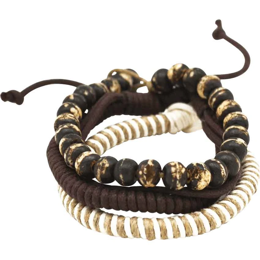 Barbarian and fantasy warriors can still accessorize their costumes with great pieces like the Set of 3 Viking Warrior Bracelets. This set includes three bracelets. Each Viking bracelet looks different. To begin with, the first bracelet is a leather cord with wooden beads. The beads have a dark and light design. Each bead is different than the next. Next, the second bracelet is a wrapped leather bracelet. This brown bracelet secures onto the wrist with an adjustable loop at the back. Finally, the third bracelet has a similar wrapped design to the second. However, it consists of natural-colored jute alternating with a white cord. This set of 3 bracelets is wonderful for those who prefer a rustic flair with their accessories. It works well with a variety of outfits, including modern ones. Add it to your Viking jewelry collection.