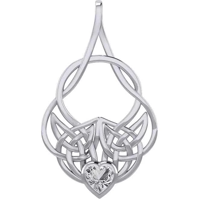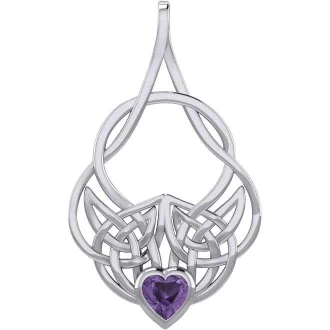 The Silver Celtic Knotwork with Heart Gemstone Pendant is a lovely choice for anyone who loves Celtic knotwork to wear with their ensemble. Made from .925 sterling silver, this pendant features an open knotwork design. Overall, it has a round, open top and an intricately detailed lower half. Also, the knotwork forms a loop at the top for sliding onto a chain, not included. At the bottom of the pendant, it has a heart-shaped gemstone. There are four options of gemstone to choose from. This pendant is a wonderful personal accessory. You can add it to any jewelry collection.