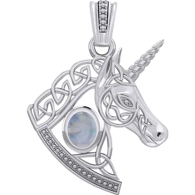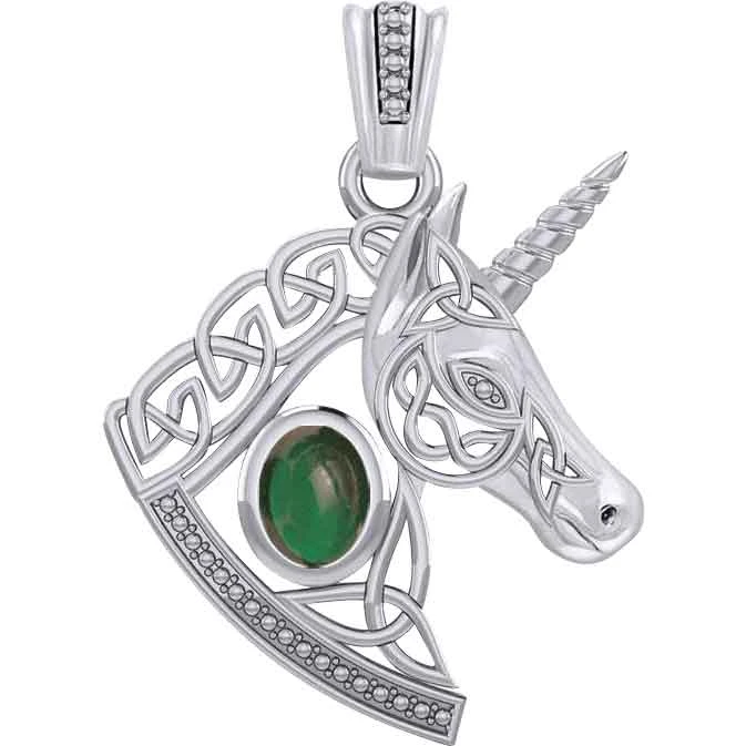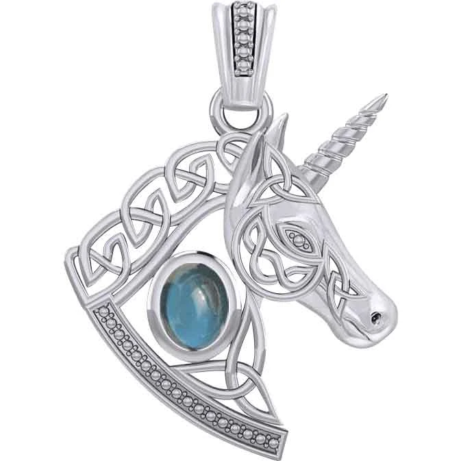 Fantasy lovers should make sure that they check out the Silver Celtic Unicorn with Gemstone Pendant for its elegant design. Made from .925 sterling silver, this pendant has a bale at the top for sliding on a chain, not included. A dotted pattern adorns the bale.