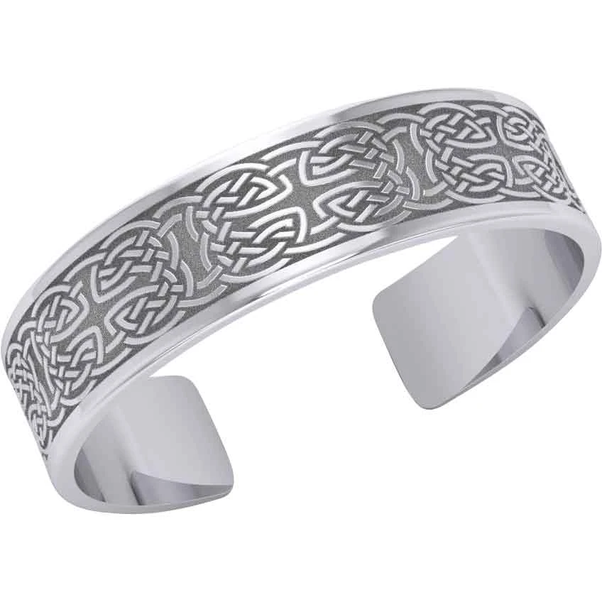 Those who love to wear Celtic jewelry and accessories are sure to enjoy the great style of the Silver Large Celtic Knotwork Cuff Bracelet. Made from .925 sterling silver, this cuff bracelet comes in three sizes. It has an open ring shape. It does not form a complete circle, allowing the wearer to slip it on and off more easily. Along the outside of the cuff, it features a wide knotwork design. The unisex design has an ornate look that continues from one end of the cuff to the other. This cuff bracelet makes a lovely personal accessory, adding Celtic style to any outfit.