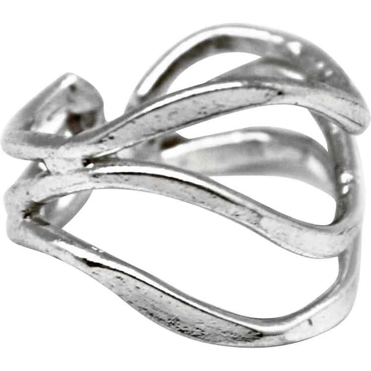 In any medieval or fantasy realm, accessories can finish off an outfit. The Silver Plated Wave Cuff Ring makes a great finishing touch. This handmade medieval ring features a silver plating. It has a cuff style, meaning that it looks like an open circle from the side. It has three thin bands running across the front. The two outer bands form the rounded ends. All three bands have a wavy design. Add this wave cuff ring to your favorite costume or ensemble. It works with a variety of styles.