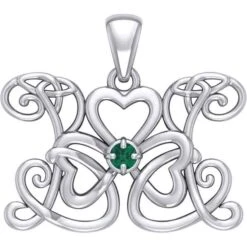 For some truly Celtic style, you can easily include the Silver Shamrock Butterfly Gemstone Pendant with any jewelry collection. Made from sterling silver, this pendant has an open cutout design. At the center top, it has a triangular bale for a chain, not included. The center of the design features a cutout shamrock clover. In the center of the clover is an emerald glass stone. The two side leaves of the clover intertwine with scrolled knotwork. The knotwork forms butterfly-like wings around the clover. The wings have curled tips. This pendant is a lovely personal accessory. Add it to your favorite outfit.