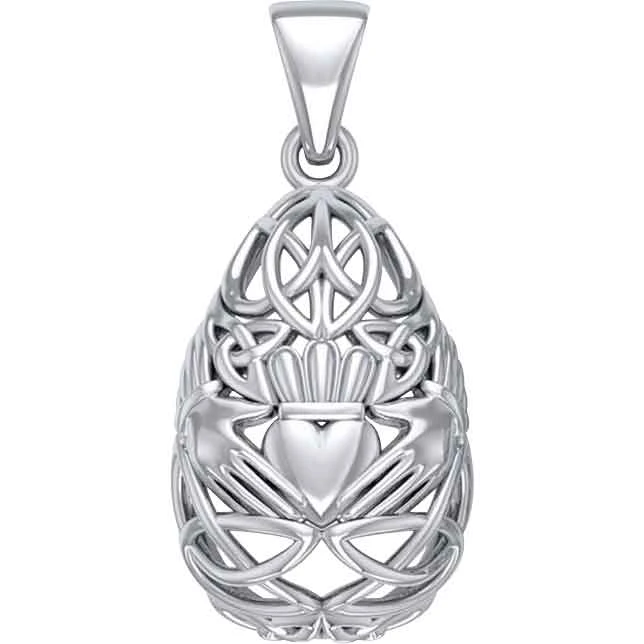 When you wish to wear jewelry with Irish symbols and Celtic style, the Silver Teardrop Celtic Claddagh Pendant is a great option. Made from sterling silver, this pendant has a teardrop shape. There is a triangular bale at the top. It allows the pendant to slide onto a chain, not included. Knotwork patterns, including triquetras, adorn the top and bottom of the pendant. In the middle, it has a Claddagh design. A Claddagh is made of two hands holding a crowned heart. This is a popular Irish symbol. It represents love, loyalty, and friendship. This pendant makes a lovely personal accessory, adding Celtic style to any outfit. It matches the Silver Celtic Claddagh Post Earrings (PS-TER1673), sold separately.
