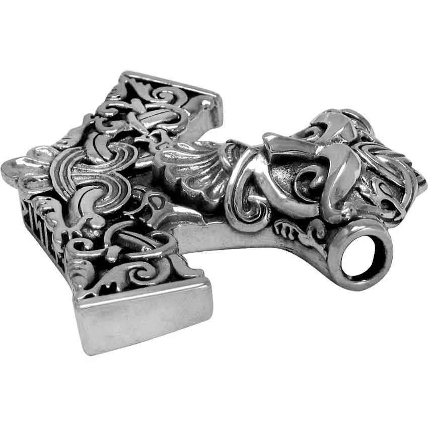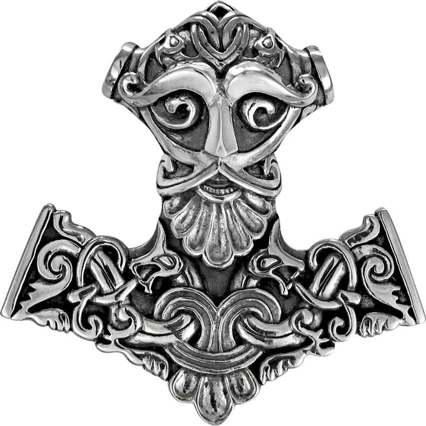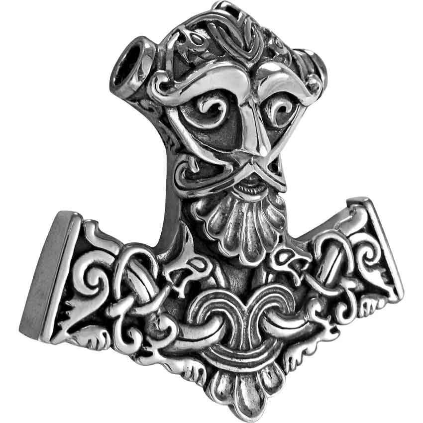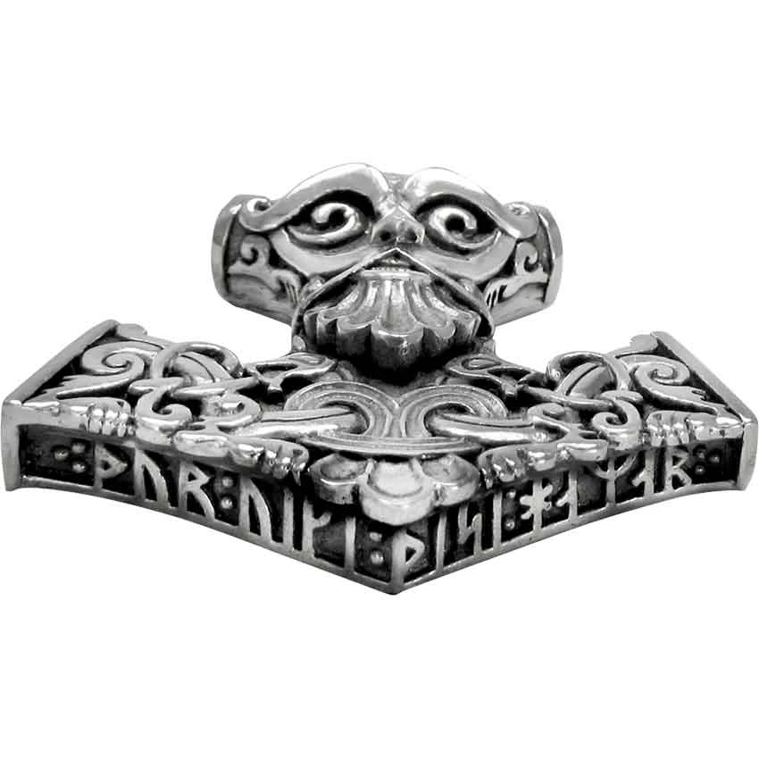 No matter if you are a follower of Thor or just like Norse mythology, you should make sure to check out the Silver Thor’s Hammer Pendant. Made from solid .925 sterling silver, this pendant takes the form of Mjolnir. The top of the pendant looks like a face. Also, it forms two holes on the sides that allow the pendant to slide onto a chain, not included. The highly detailed pendant continues down from the face at the top to a design that features two animals intertwined to form a knotwork pattern. Along the bottom of the pendant, there are Younger Futhark runes. They translate to a phrase that means Thor Hallow This Hammer. This pendant makes an ideal addition to any Viking costume or Norse ensemble.