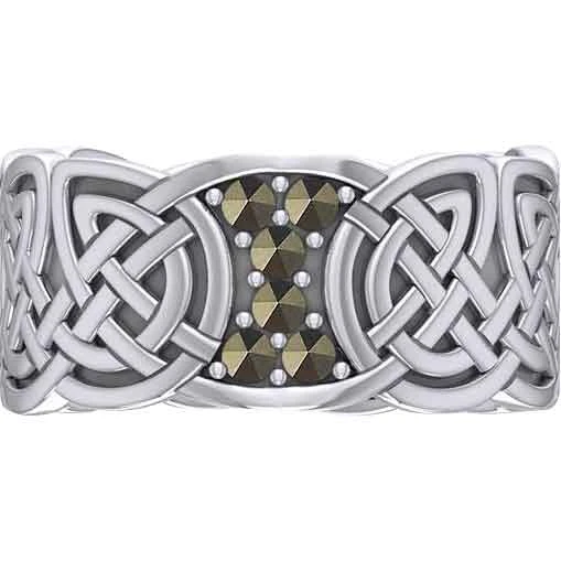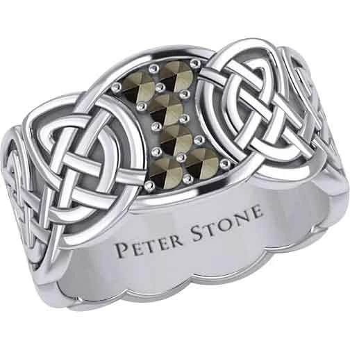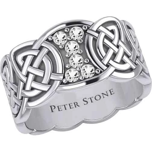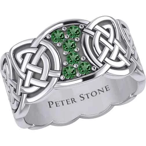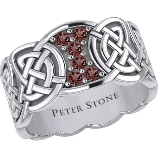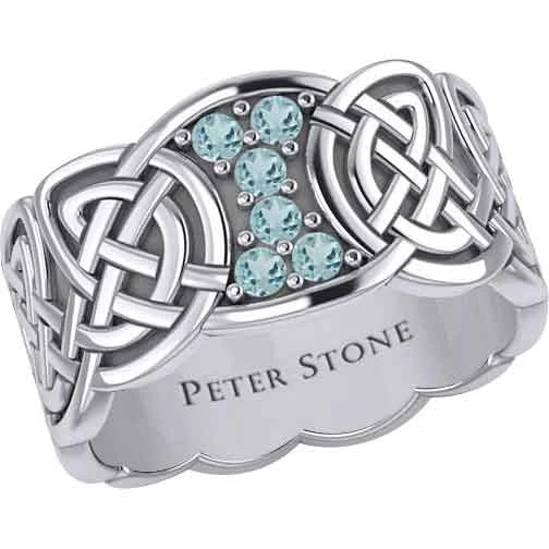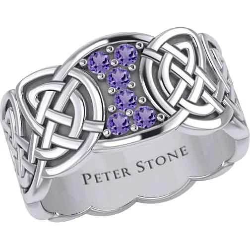 When you are wanting a piece of jewelry with some Celtic flair, you should make sure to check out the Six Gemstones Silver Knotwork Ring. Made from sterling silver, this ring comes in a wide range of sizes, allowing both men and women to wear this wonderful piece. This ring features a band with a carved design. Rounded knotwork forms the band. At the top, there is a section without knotwork. The section has concave sides near the band and convex edges at the top and bottom. It features six round gemstones surrounded by small silver dots. There are six gemstone options to choose from. This ring makes a great addition to any jewelry collection. It is a wonderful personal accessory.