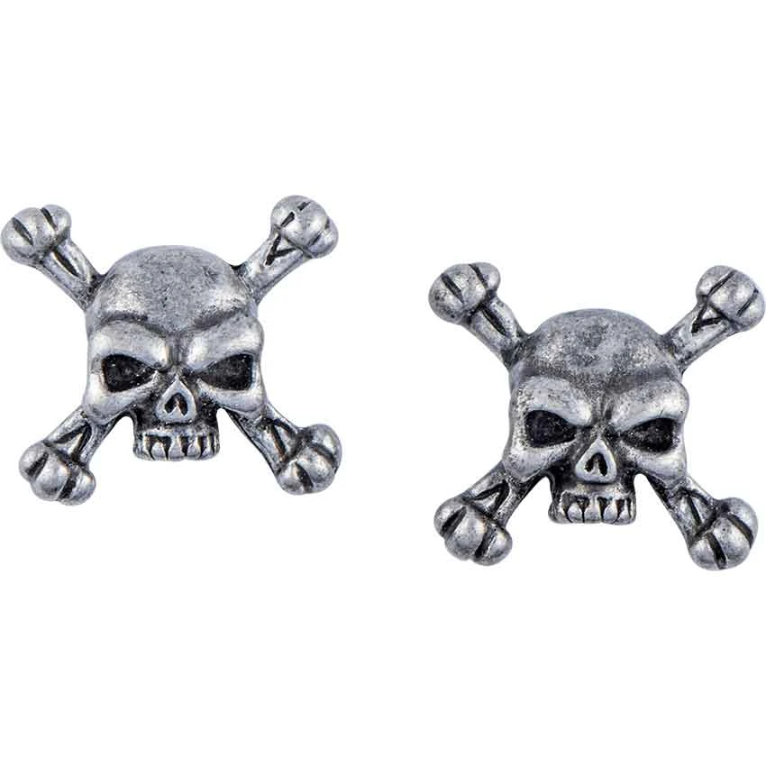 Featuring a classic skull and crossbones design, our Skull Stud Earrings are the perfect ear accessories when it comes to a variety of styles, including gothic and pirate fashion. Studs are one of the easiest to wear styles of earrings, though they do require an actual ear piercing. The Skull Stud Earrings can be the final touch to an elaborate ensemble, or they can be worn with every day outfits for just a subtle hint of edge. Made out of lead free pewter and crafted with painstaking attention to detail, the surface of the jewelry is given a slightly worn appearance.