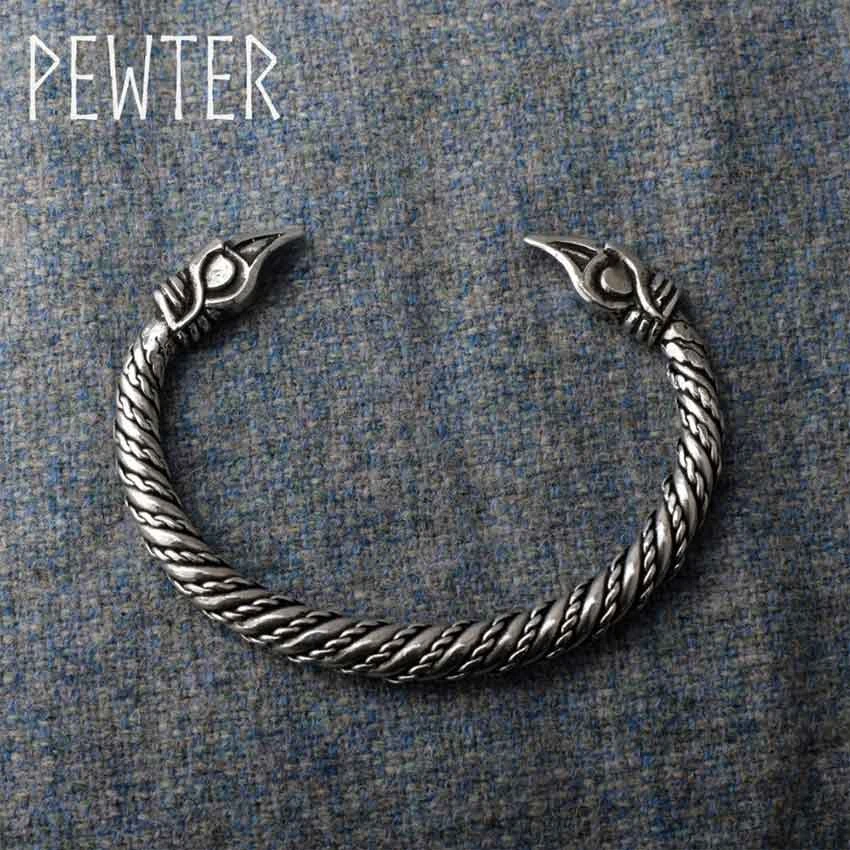 At each end of the open Norse bracelet, there is a stylized ravens head. The Nordic bracelet comes with care instructions. You can wear this Viking raven bracelet with a variety of Viking looks. It also makes a great addition to a Norse jewelry collection.